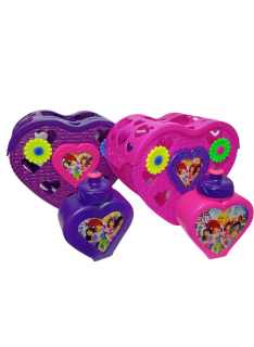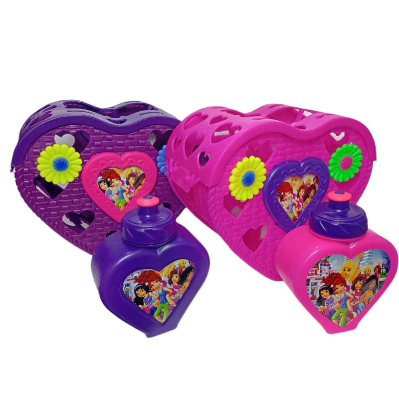 Es un accesorio encantador diseñado especialmente para bicicletas, especialmente para aquellas de estilo infantil o femenino. Esta canasta está decorada con motivos de princesas y corazones, lo que la hace especialmente atractiva. La canasta se instala típicamente en el manillar de la bicicleta, asegurándola con correas o abrazaderas, lo que la hace fácil de montar y desmontar según sea necesario.