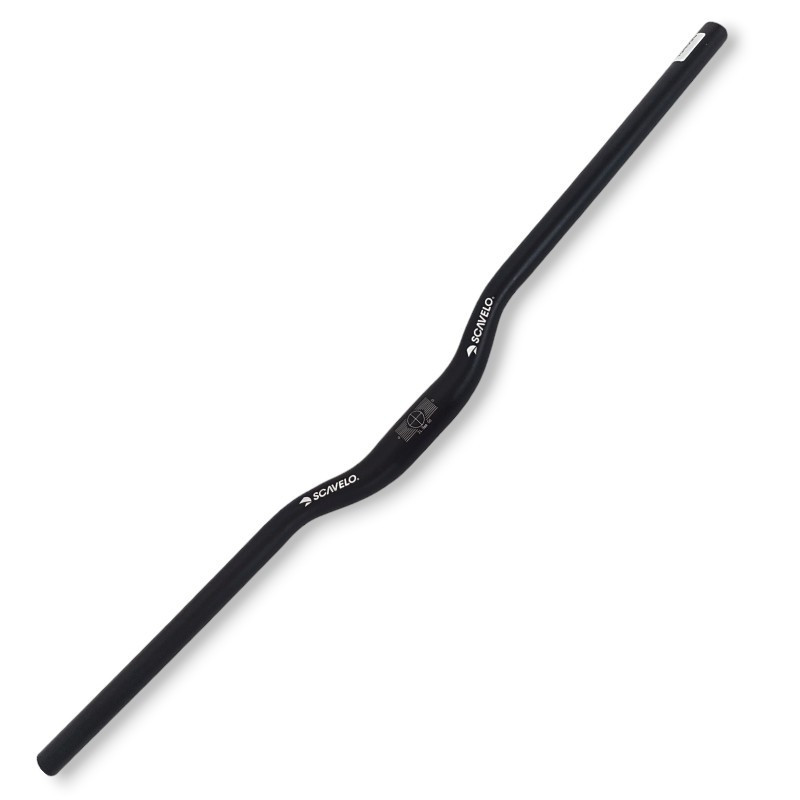 El manubrio Scavelo MTB DH de 31.8 mm en color negro tiene una longitud de 800 mm, ideal para una conducción agresiva en terrenos de descenso.