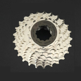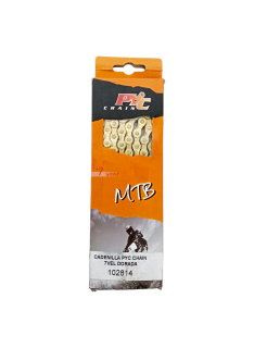 la cadenilla PYC Chain para sistemas de 7 velocidades, en un elegante acabado dorado. Esta cadenilla está diseñada para proporcionar cambios suaves y eficientes, asegurando una transmisión de potencia confiable en cada pedaleada. Fabricada con materiales de alta calidad, ofrece una excelente resistencia al desgaste y a la corrosión, garantizando una larga vida útil. Perfecta para ciclistas que buscan combinar rendimiento y estilo.