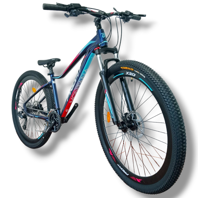 Bic. Mtb 29 Profit Montana X20, diseñada para rendimiento máximo en terrenos exigentes. Equipada con transmisión 2 x 9 vel.shifter